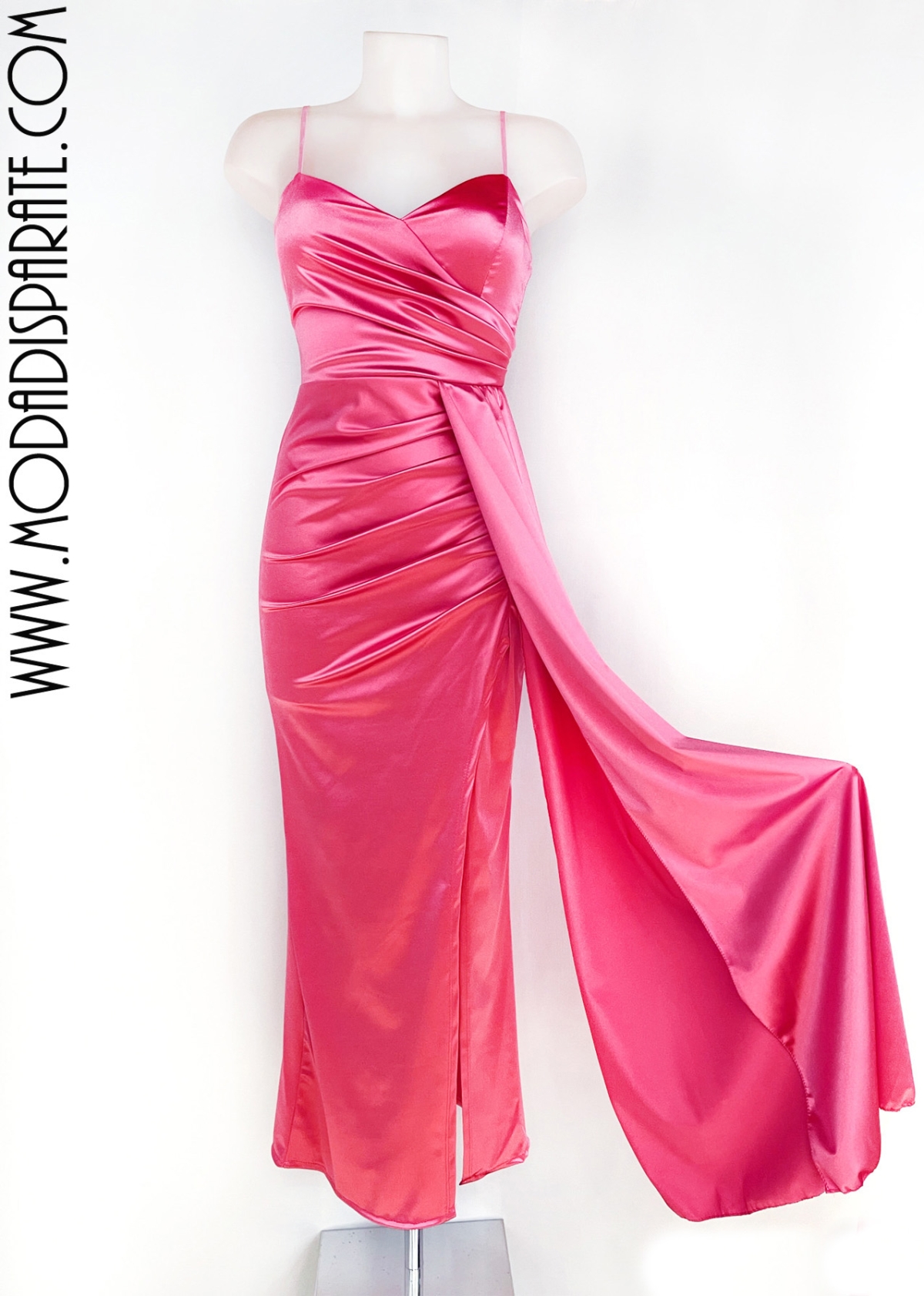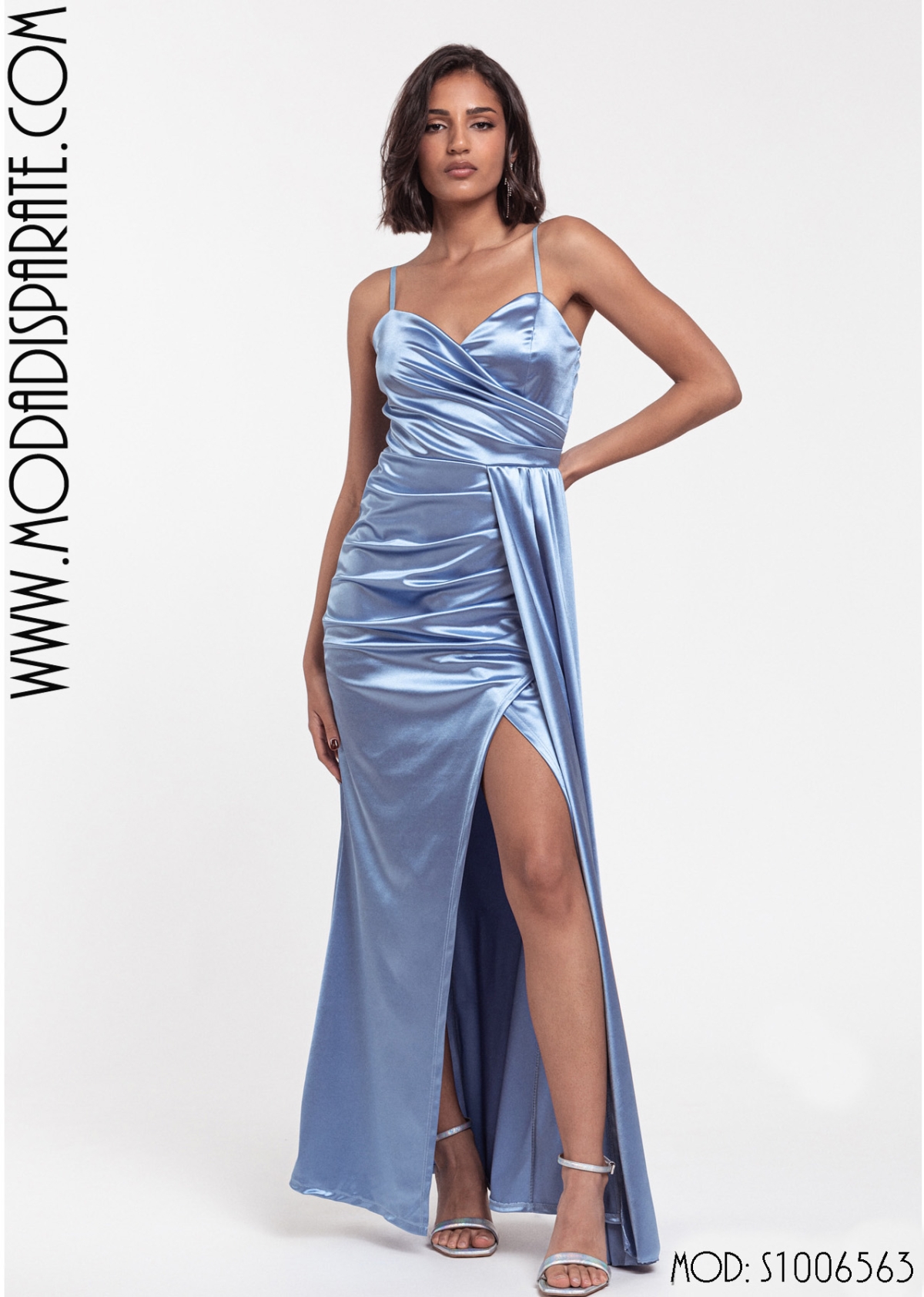S1006563 VESTIDO FIESTA RASO ELASTICOTTES DRAPEADO FAJIN