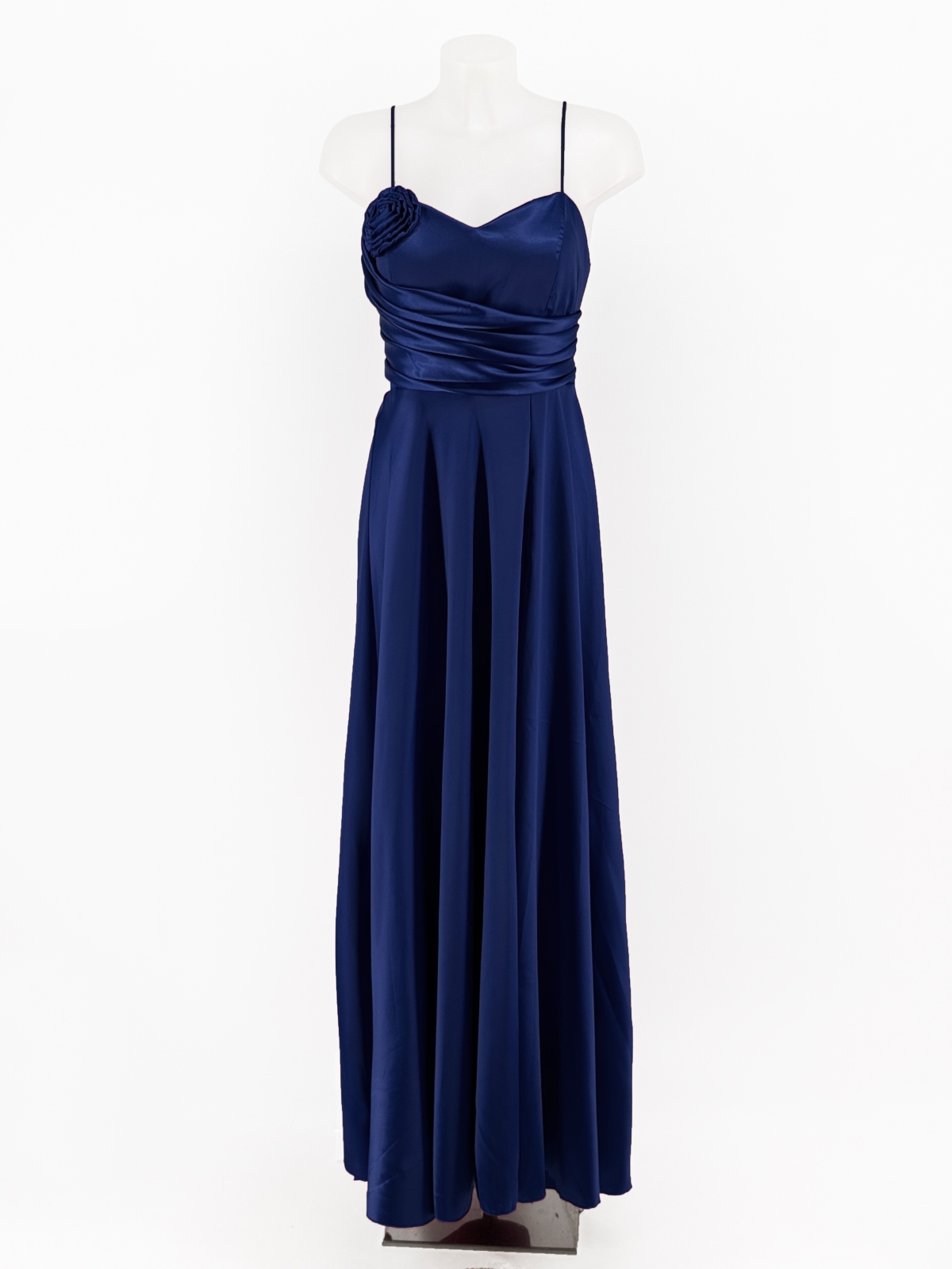 S1006707 VESTIDO FIESTA LARGO SATEN LISO FALDA VUELO PALABRA DE HONOR