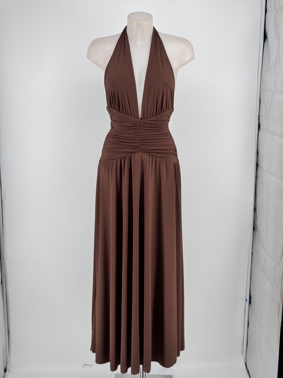 S1006749 VESTIDO FIESTA LARGO PUNTO CINTURA DRAPEADA EVASE ABERTURA